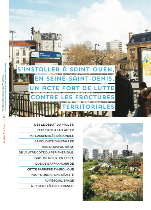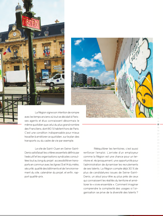 J’ai conçu et écrit ce livre illustré qui retrace le déménagement des services de la Région Île-de-France du centre de Paris à Saint-Ouen, en Seine-Saint-Denis, et leur regroupement en un lieu unique pour administration plus efficace au service des Franciliens.